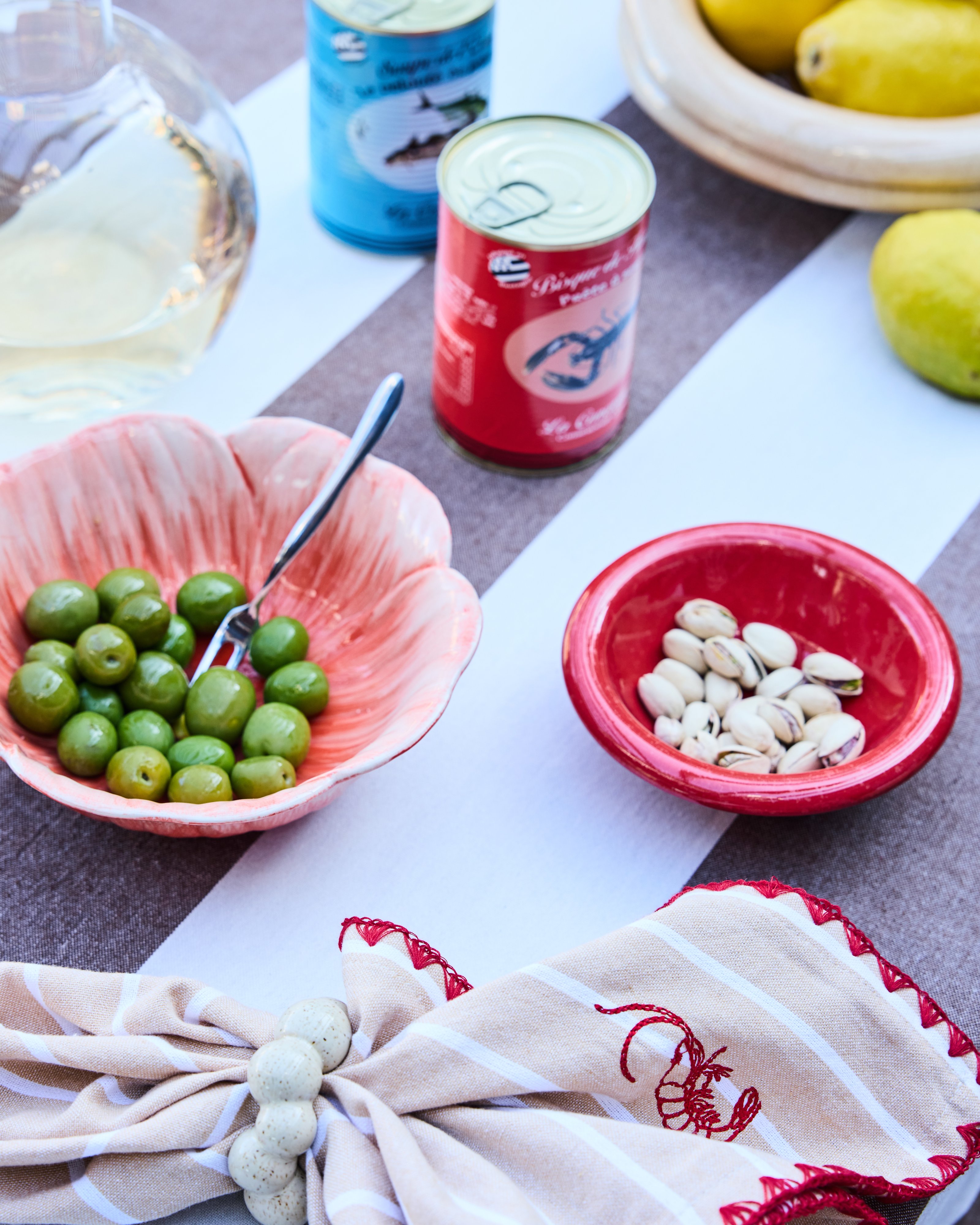 Bubbas klassiska ränder och lekfulla broderier löper genom dukar, servetter och kökshanddukar och skapar en personlig helhet som lyfter både köket och bordet.