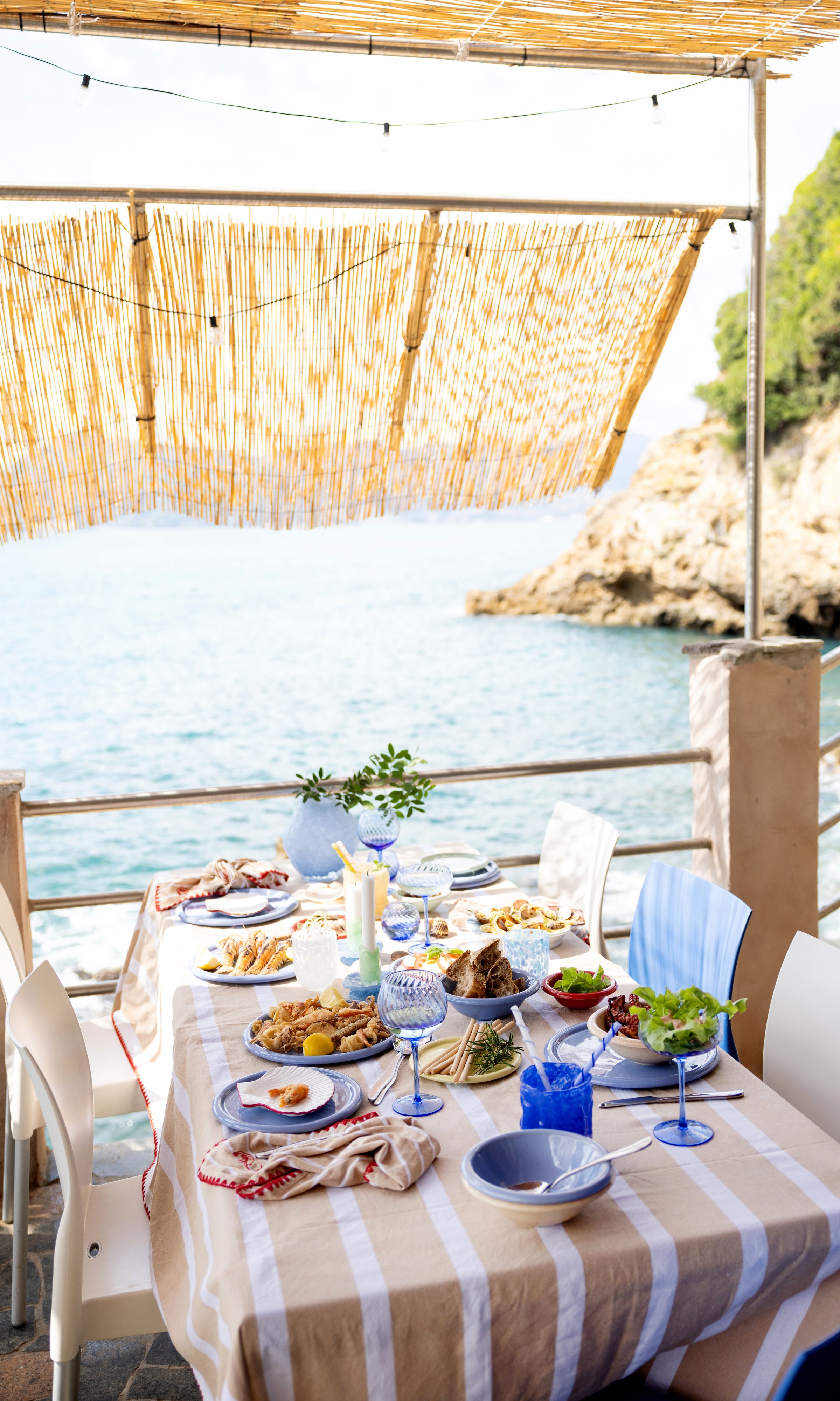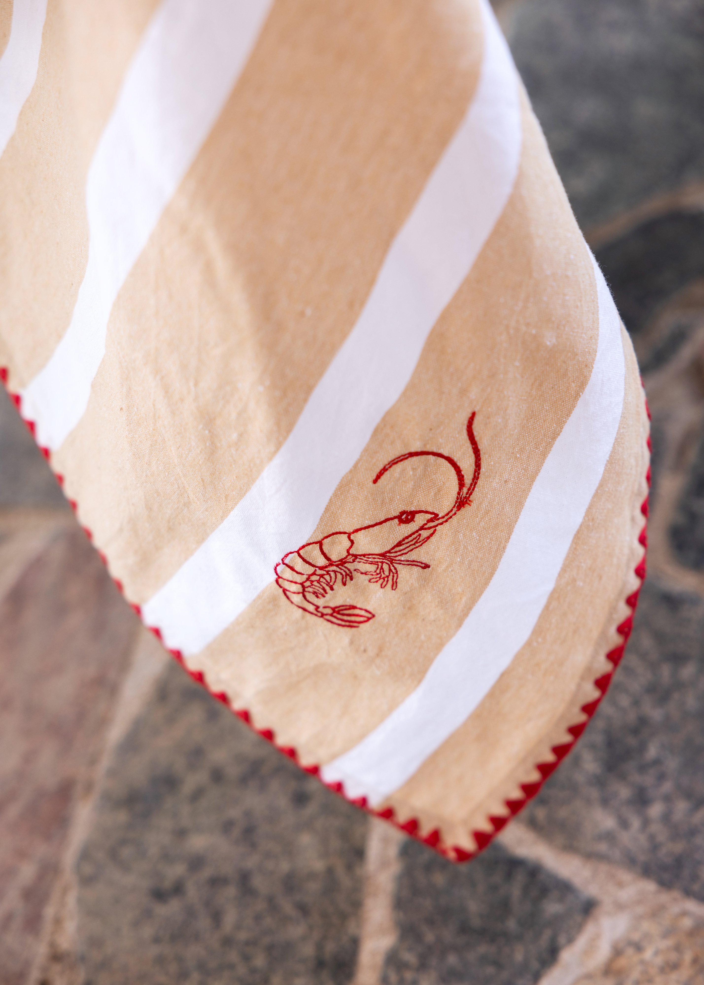 Bubba-serien hämtar inspiration från Sydeuropa och långa, inbjudande middagar där livet får ta tid. Klassiska ränder möter lekfulla broderier som räka och ostron – en blinkning till havet och en kontrast till den eleganta designen. De laskade kanterna och de noggrant valda färgkombinationerna skapar en personlig dukning med både värme och karaktär. Serien omfattar bordsdukar, servetter och kökshanddukar i olika färgställningar, alla tillverkade i 70% återvunnen bomull och 30% återvunnen polyester.