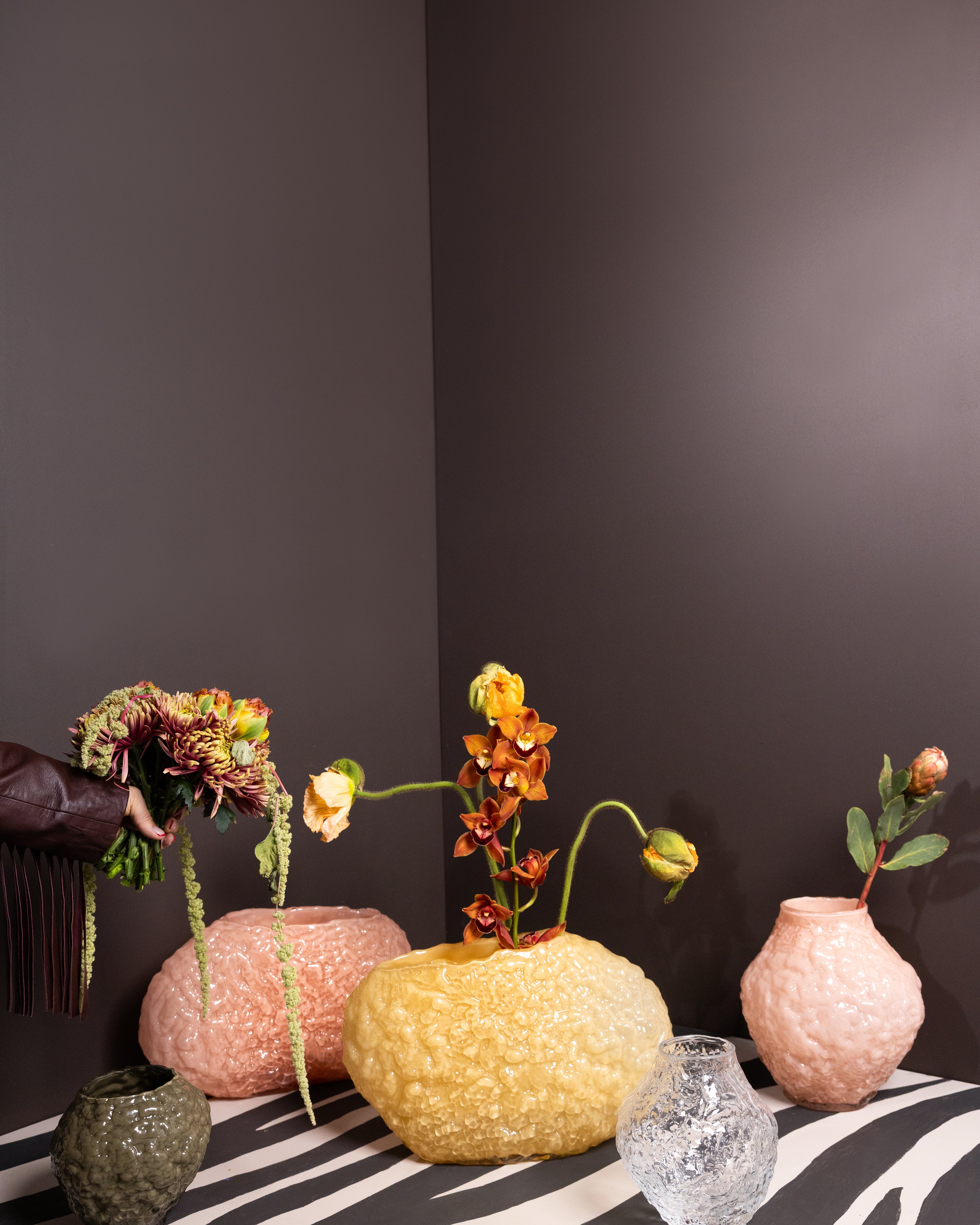 För i höstens kollektion bjuder vi in dig på en resa där vilda djur och lekfulla cowboyinfluenser förenas med en sofistikerad, lyxig twist. Kollektionen fångar kontrasten mellan otämjd frihet och elegant finess, och bjuder på unika uttryck av zebra- och koprint, där varje mönster återspeglar både naturens mystik och kraft. Kraftfulla färger krockar med mjukare nyanser, med kombinationer som brunt och rött eller persika, grönt och en bubblig limegul. Skratten ekar, musiken väcker danslusten och klackarna ljuder i munter takt. Stämningen är varm, och vi adderar personliga detaljer överallt så att varje del blir helt unik. Glas, stengods och textilier tar huvudrollen, mjukt kombinerade med våra måst-ha-produkter.